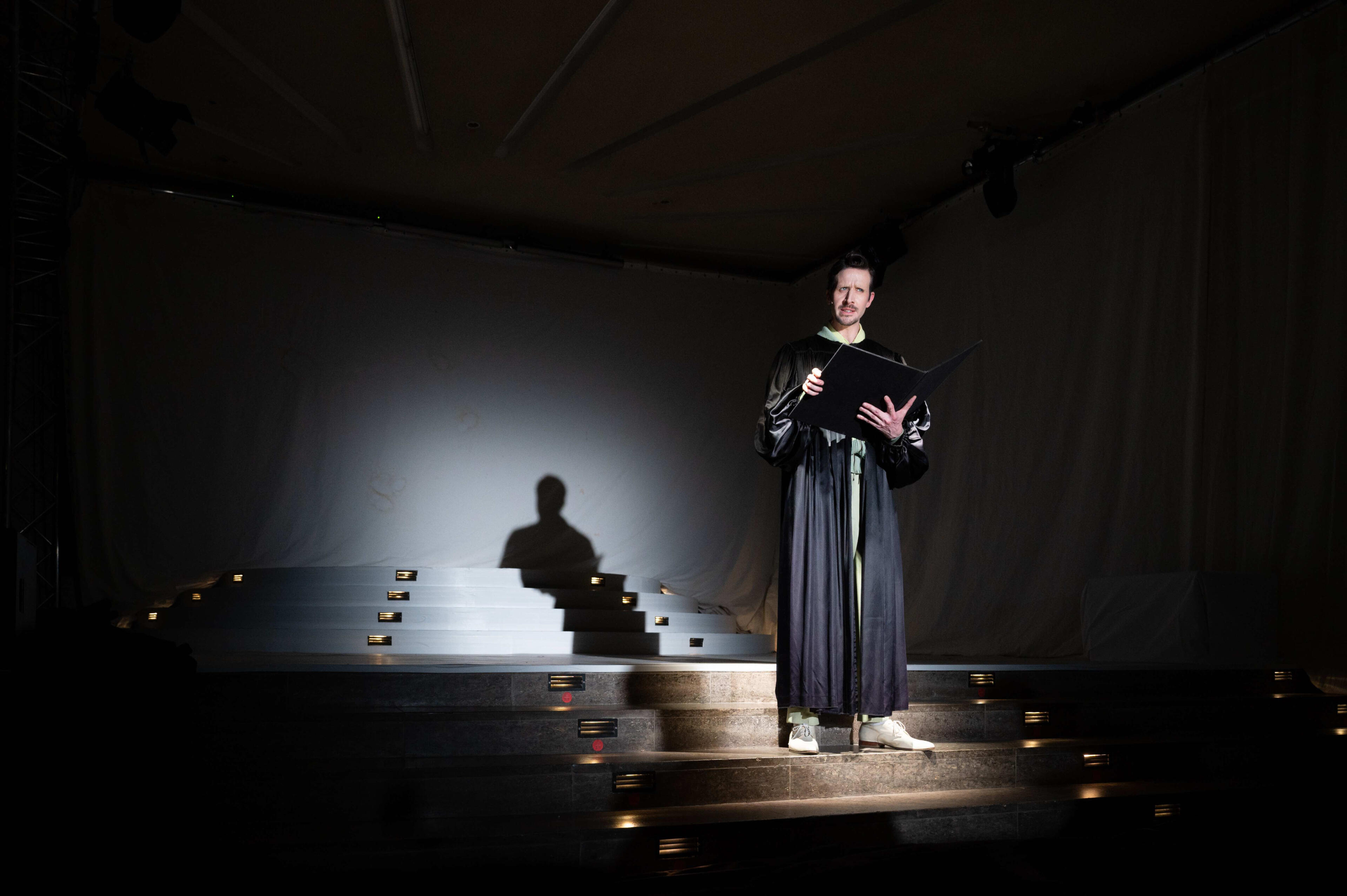 “In his first production at Schauspiel Stuttgart, Tom-Henry Löwenstrom treats Yishai’s text as a piece of narrative theater, addressing the audience directly.